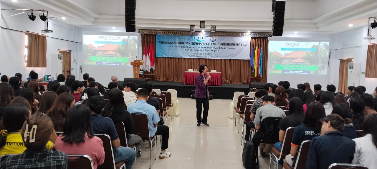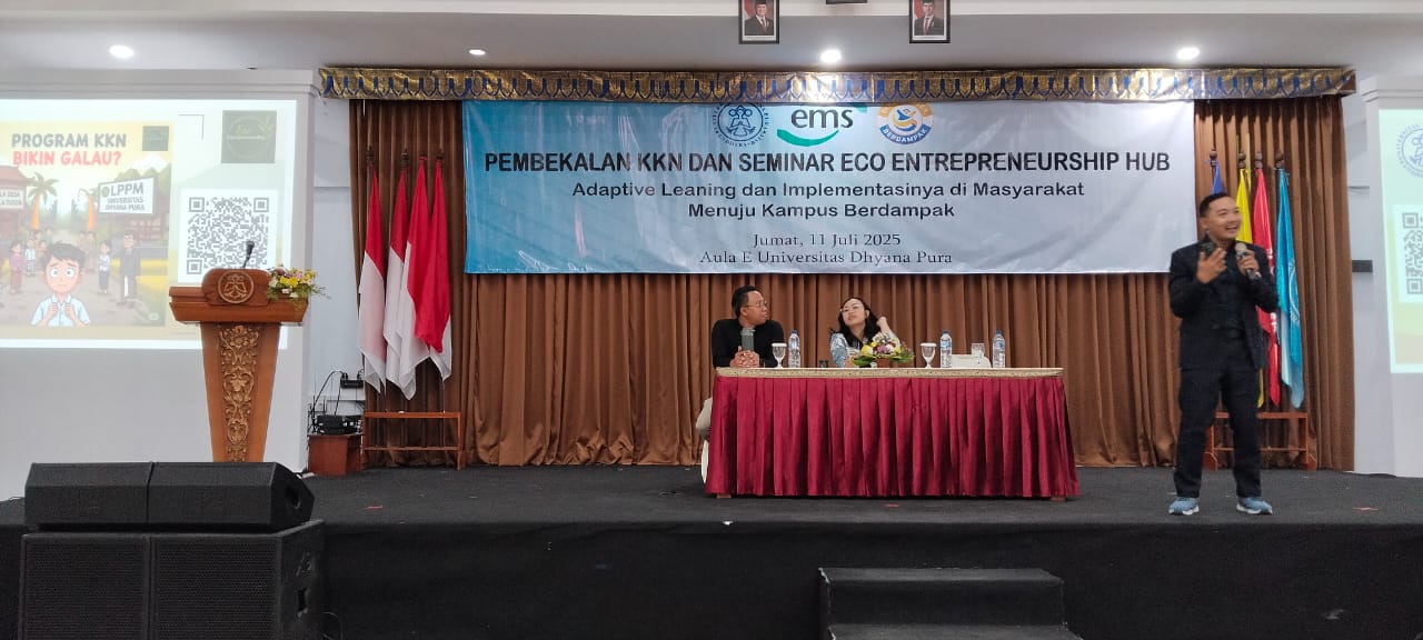 Denpasar, 11 Juli 2025 — Dalam upaya mengintegrasikan ilmu pengetahuan, pengabdian, dan keberlanjutan lingkungan, Program Studi Pendidikan Kesejahteraan Keluarga (PKK) Universitas Dhyana Pura menggelar kegiatan bertajuk “Pembekalan KKN dan Seminar Eco-Entrepreneurship Hub: Adaptive Learning dan Implementasinya di Masyarakat Menuju Kampus Berdampak.” Acara ini dilaksanakan secara meriah dan inspiratif pada Jumat, 11 Juli 2025, bertempat di Aula Gedung E Universitas Dhyana Pura, Bali.