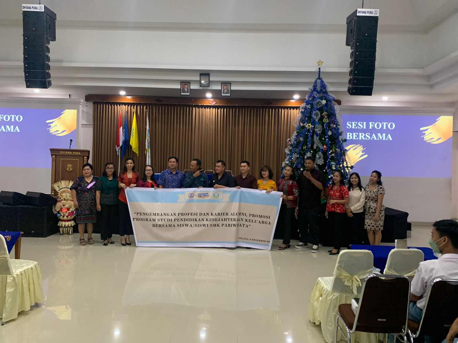 Selasa, 6 Desember 2022 Program Studi Pendidikan Kesejahteraan Keluarga mengadakan “Sharing Alumni” di AULA E Universitas Dhyana Pura. Acara secara resmi dibuka oleh Dekan Fakultas Ekonomika, Bisnis dan Humaniora Bapak Dr. Gusti Ngurah Joko Adinegara, SE.,M.A. dan dalam sambutannya menyambut baik agar para alumni selalu memberikan support dan motivasi kepada para mahasiswa serta calon mahasiswa. Peserta yang hadir adalah Alumni, Para Dosen Tetap Prodi PKK, dan 30 Siswa SMK Wira Harapan dan juga 20 Siswa SMK triatmajaya kelas XII dengan Jurusan TB dan AP. Acara ini juga dberikan sambutan oleh Ketua Program Studi Pendidikan Kesejahteraan Keluarga Ibu Dra. Ni Made Erpia Ordani Astuti, M.Pd. yang menyampaikan bahwa hampir 100% Alumni Prodi PKK sudah terserap di Industri dan menjadi Guru sesuai Profil Lulusan Prodi PKK. selain itu, Para Alumni juga diberikan kesempatan untuk sharing diantaranya Ppak Agung Putra Lulusan Tahun 2015 yang saat ini juga sebagai akademisi, praktisi dan entrepeneur yang memberikan motivasi kepada para peserta mahasiswa dan siswa/i SMK untuk selalu produktif dan konsisten yang menjadikan kunci kesuksesan. Alumni yang kedia dberikan kesempatan sharing oleh Mikho Sanjaya Alumni th 2015 seorang pengajar dan juga owner dari muara resto agar sllu berpegung teguh pada kemandirian dan ketekunan, kesempatan ketiga dberikan kepada Fernanda alumni th 2019 yang saat ini menjadi Guru di SMK Wira Harapan menyampaikan dalam Sharingnya bahwa kunci kesuksesan adalah kesabaran, ketekunan dan konsisten. dan Juga kesempatan keempat diberikan kepada Fitri Widhiastiti Alumni Lulusan tahun 2022 dan terbaik peringkat ke 2 Undhira Bali yang sekarang menjadi Guru di SMK PGRI 1 Badung memberikan sharing pengalaman bahwa melakukan hobi dan tetap menjadi produktif merupakan sebuah proses dalam menggapai sebuah impian. Antusias dan apresiasi dirasakan oleh seluruh peserta terutama adik – adik siswa siswi SMK terlihat dari responsif merekan dalam bertanya kepada para alumni mengenai kita sukses dan suka duka saat kuliah di Program Studi Pendidikan Kesejahteraan Keluarga, Fakultas Ekonomika, Bisnis dan Humaniora. Acara terakhir ditutup dengan hiburan dengan penampilan mahasiswa program studi Pendidikan kesejahteraan Keluarga yaitu andrean bintara kristalius penampilan akustiknya dan juga Ayu Dwi Wulandarai dengan tari jogednya. Semua kegiatan terlaksana dengan baik dan lancar karena dukungan dari semua pihak.