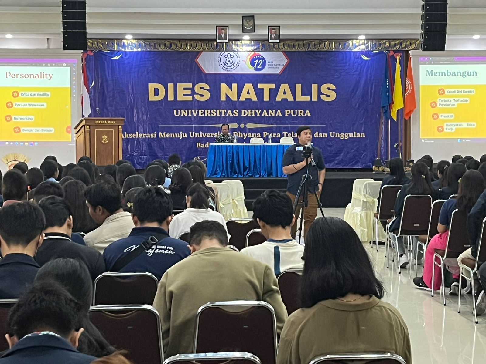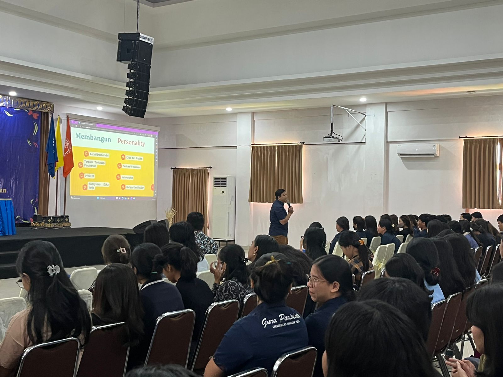 Pada hari Rabu, 14 Juni 2023 lakukan Pembelajaran Karakter berkolaborasi dengan Program Studi Pendidikan Kesejahteraan Keluarga, Fakultas Ekonomika, Bisnis, dan Humaniora, Universitas Dhyana Pura dengan Tema ” Great Personality and Character Building”. Program Studi Pendidikan Kesejahteraan Keluarga mendatangkan Narasumber dari Industri yaitu Bapak Agung Wirahadi Kusuma, S.E. Human Resource and Genaral Affair Universitas Dhyana Pura. Peserta yang hadir dari mahasiswa Fakultas Ekonomika, Bisnis, dan Humaniora, Fakultas Kesehatan Saint Terapan dan Fakultas Vokasi dilakukan secara online dan offline dilaksanakan di Aula Gedung E. dan Theater . Antusias dan keaktifan dirasakan para peserta saat pemebalajaran karakter berlangsung.